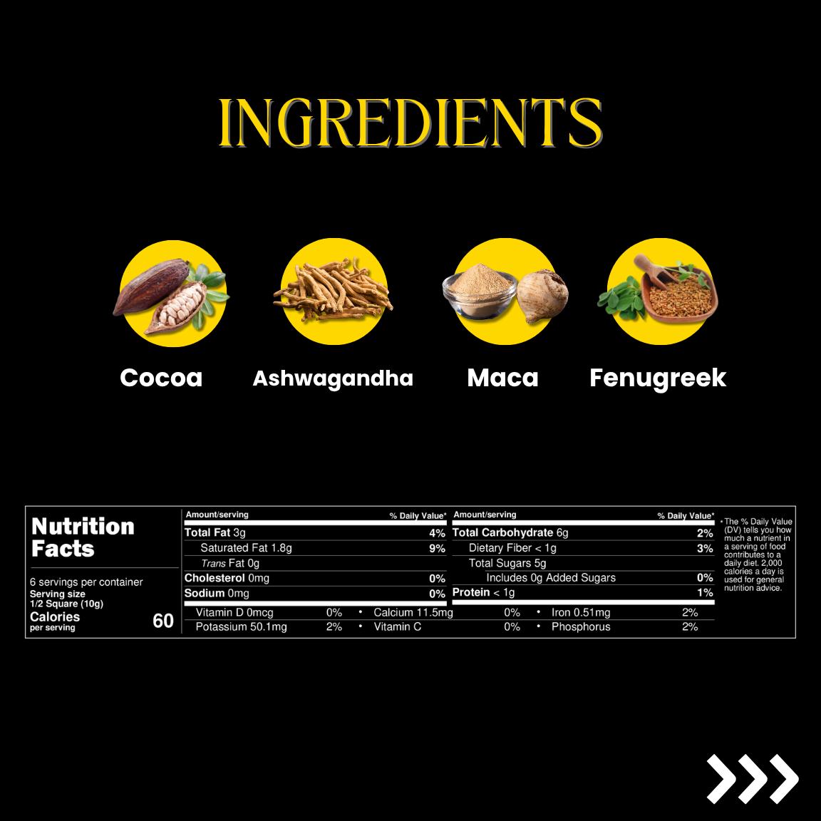 Our chocolate is composed of natural aphrodisiac herbs that are both flavorful & made for all genders: