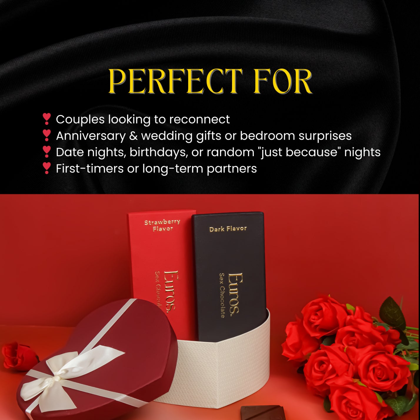 Euros Chocolate offers a new experience for couples to spice things up in bed. This product is not intended to diagnose, treat, cure, or prevent any diseases (no therapeutic claims).